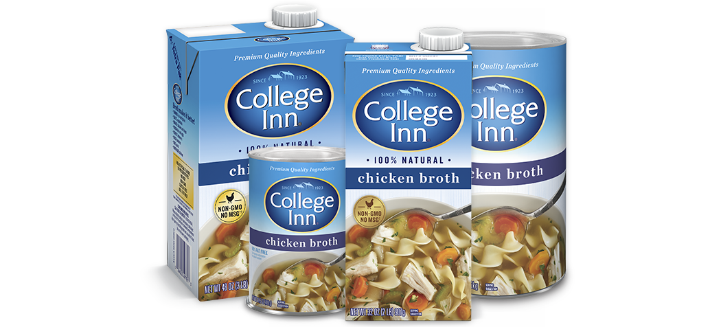 Chicken Broth. Contains Less Than 1% of the Following: Salt, Dextrose, Chicken Fat, Monosodium Glutamate, Hydrolyzed Wheat Gluten, Natural Flavors, Autolyzed Yeast Extract, Carrot Juice Concentrate, Mono And Diglycerides, Xanthan Gum, Onion Juice Concentrate. Contains: Wheat.